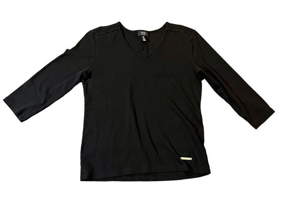 Jones New York 3/4 Sleeves Embellishment At Shoulder Black Shirt. Measurements in photos. In good,... Show more