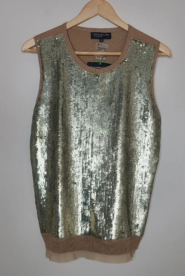 Jones New York Collection Gold Sleeveless Sequin Sweater Vest Size Large NWT Approx Measurements:... Show more
