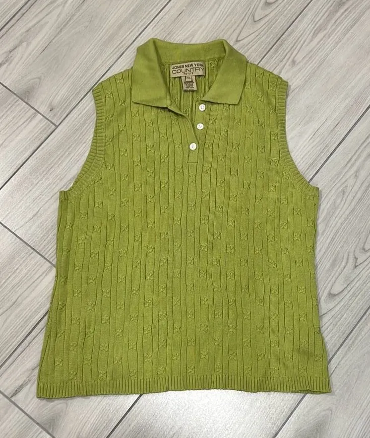 jones new york country petite vest size petite large lime green vintage condition cotton blend