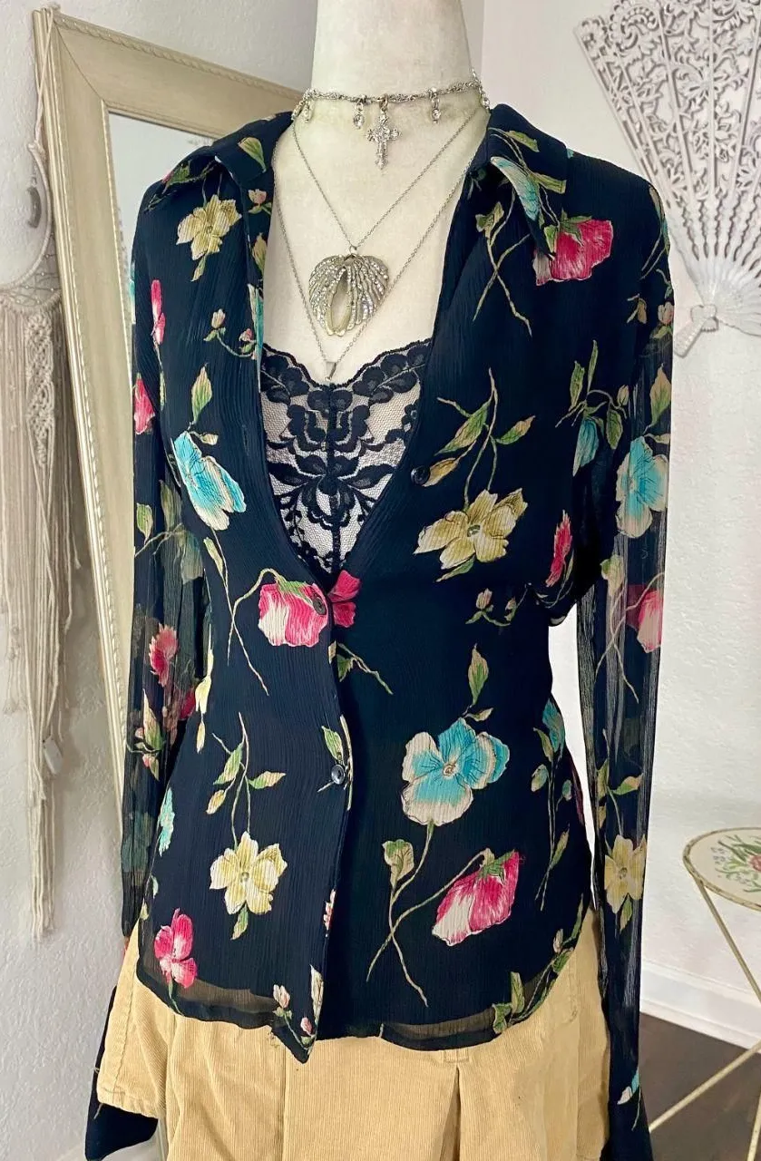 🥀 Romantic Whimsygoth Floral Silk Button Up Blouse 🥀 ༓ Brand: Jones New York ༓ Size: 10, 100% S... Show more