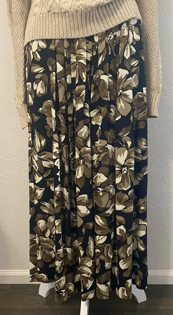 Comfy stylish retro 90s vintage Y2K fall floral long maxi pleated preppy academia skirt Jones New Y... Show more