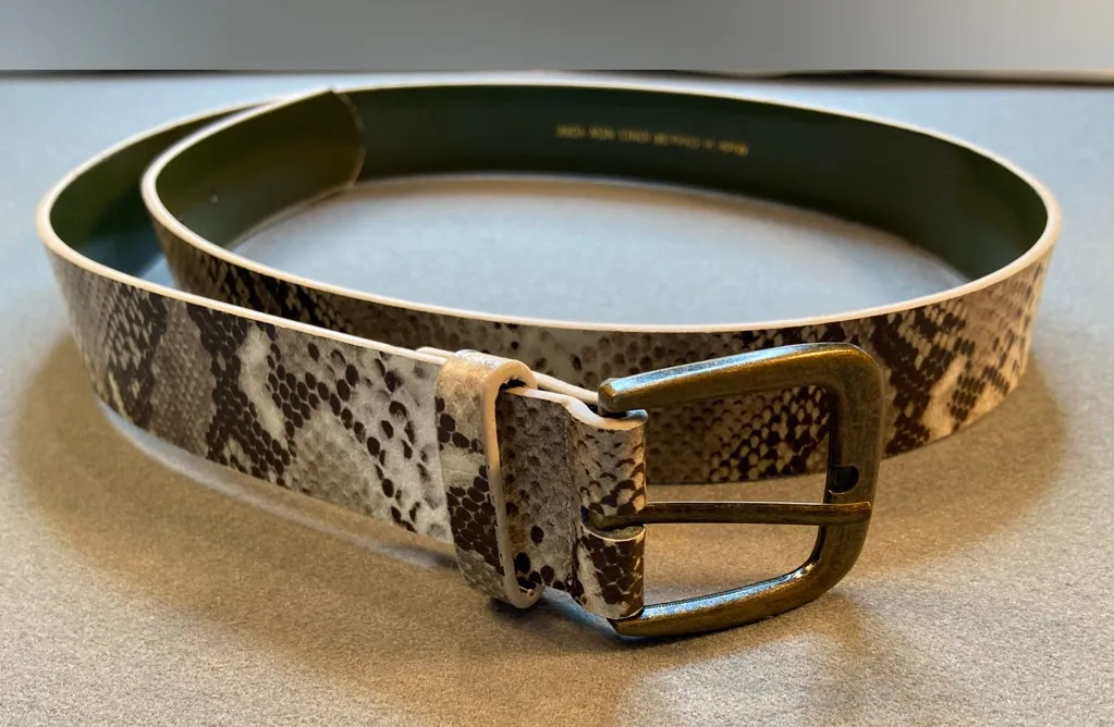 41.5” long from end to buckle end Very good condition Hardware is dark brass color