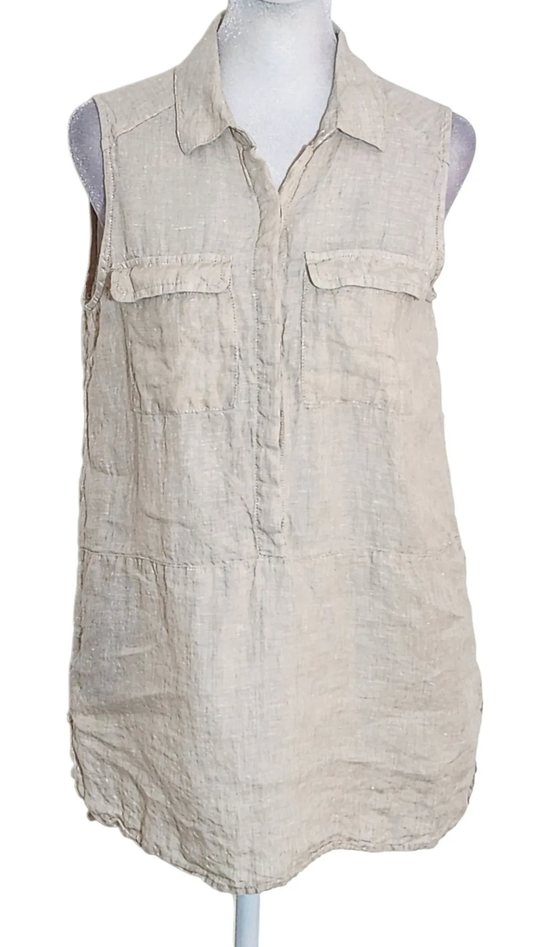 This Jones & Co natural linen top features a relaxed fit with chest pockets and buttons halfway down... Show more