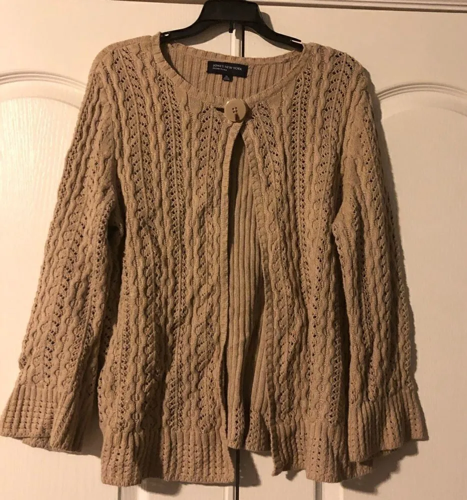 Jones New York Beige 1 button Thick crochet fabric Measurements Armpit to wrist ~15”