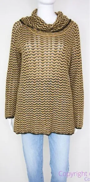 Jones New York women's cowl neck pointelle crochet wavy grain brown sweater, L wavy grain cowl neck... Show more