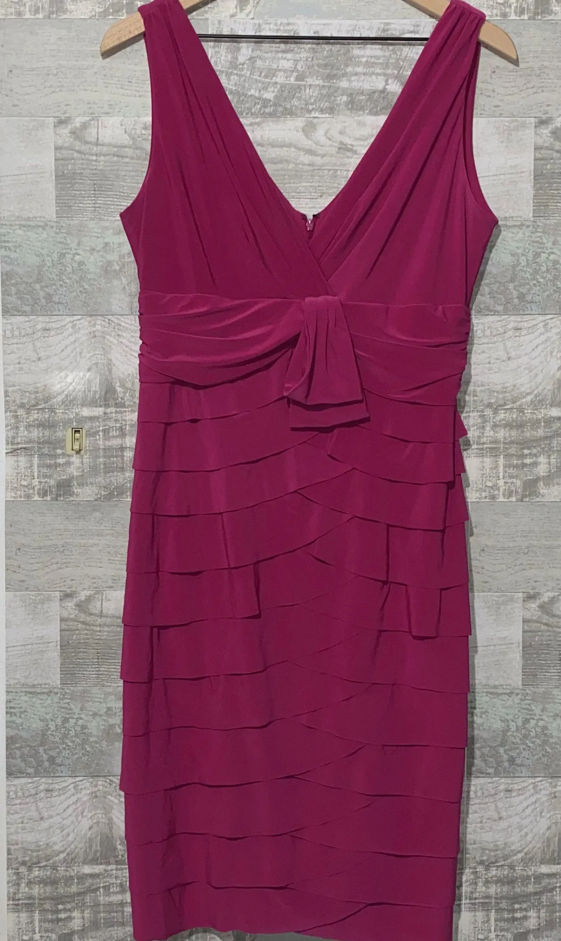 Jones New York brand pink rose colored solid zip back bow style front ladies women’s bodycon dress s... Show more