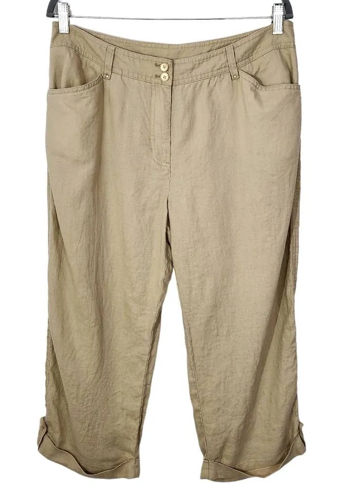 Jones New York linen pants. Make me an offer! Style: Relaxed fit, capri Color: Khaki Closure: Doubl... Show more
