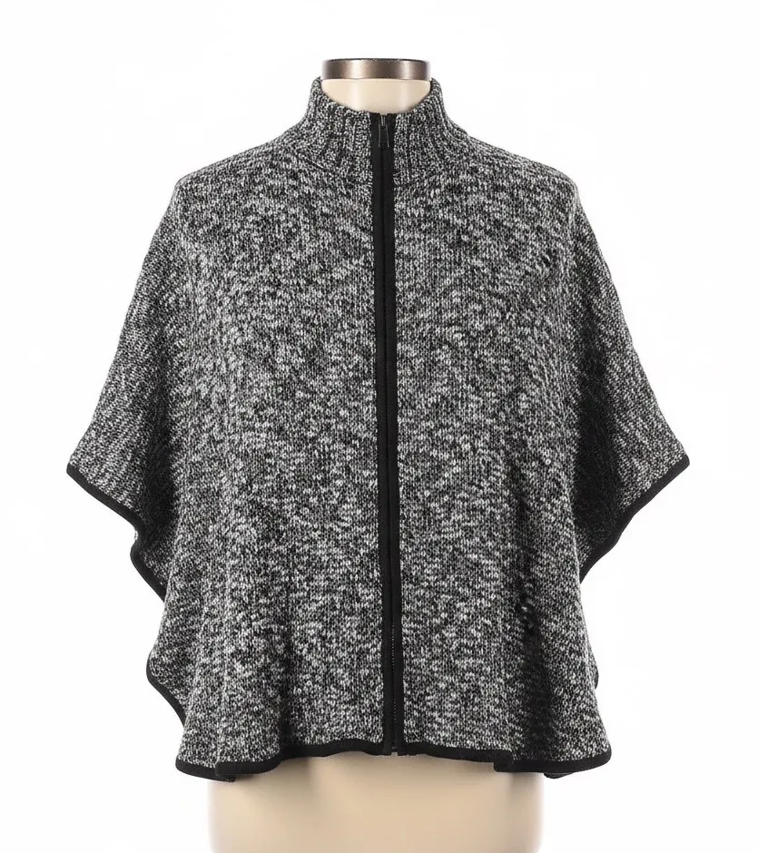 speckled knit, mock neck, full zip, poncho sweater, casual, comfortable, travel, layering, knitwear, fall fashion, winter style, chunky knit, Quiet Luxury, Old Money, Preppy, Lagenlook, Artsy, Minimalism, Academic, Dark Academia, Monochrome, Workwear, Corporate Chic, Travel Wear, Cozy, Winter, Fall, Layering, Relaxed Fit, Capelet, Shawl, Oversized, Chunky Knit, Sophisticated, Classic, Timeless, Textured, Neutral, City Girl, Streetwear, Modest, Mod