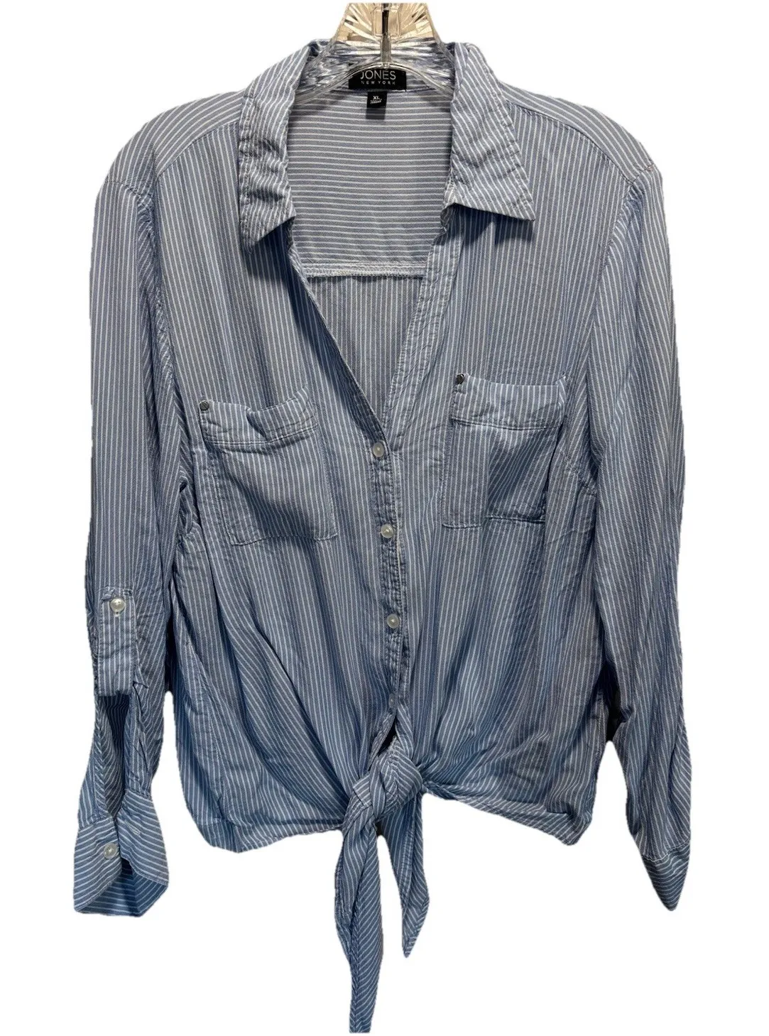 The Jones New York Long Tab Sleeve Button Up Tie Waist Blouse in Size XL is a versatile and stylish... Show more