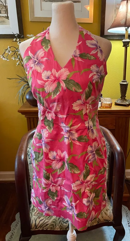 Jones New York Signature cotton blend pink floral print halter style mini dress. Size 8. Cotton span... Show more