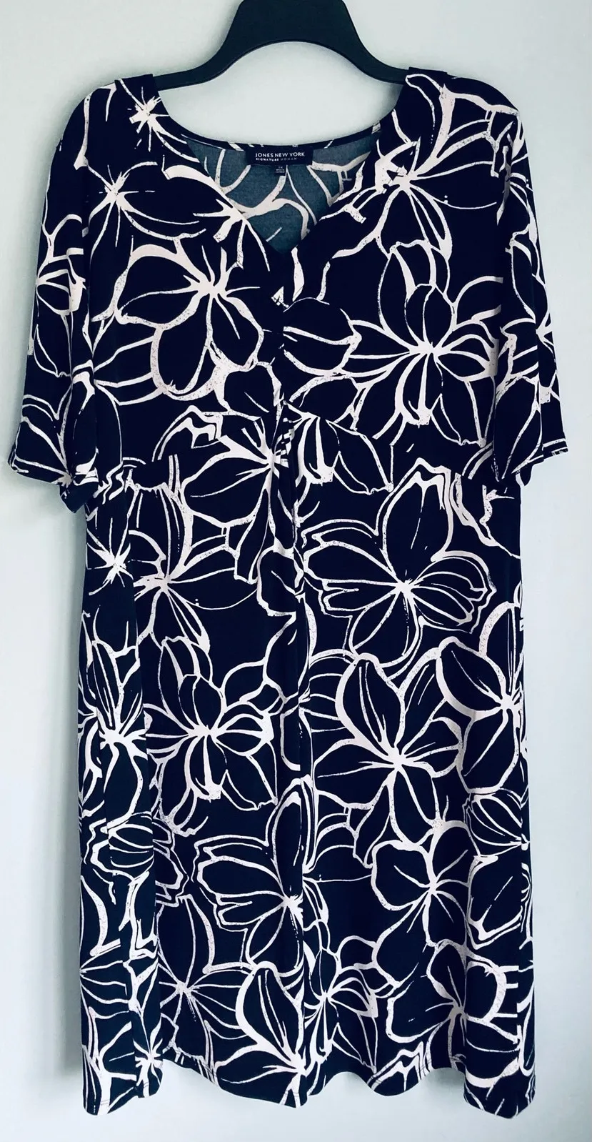 Excellent preowned dress from Jones New York in size 1X. This is a very dark navy color with white... Show more