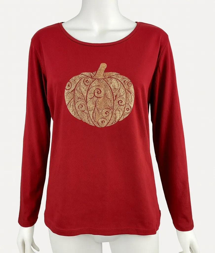 Jones New York Signature Red Pumpkin Top Women's XXL Long Sleeve Fall Tee Color: Red Orange Type: T... Show more