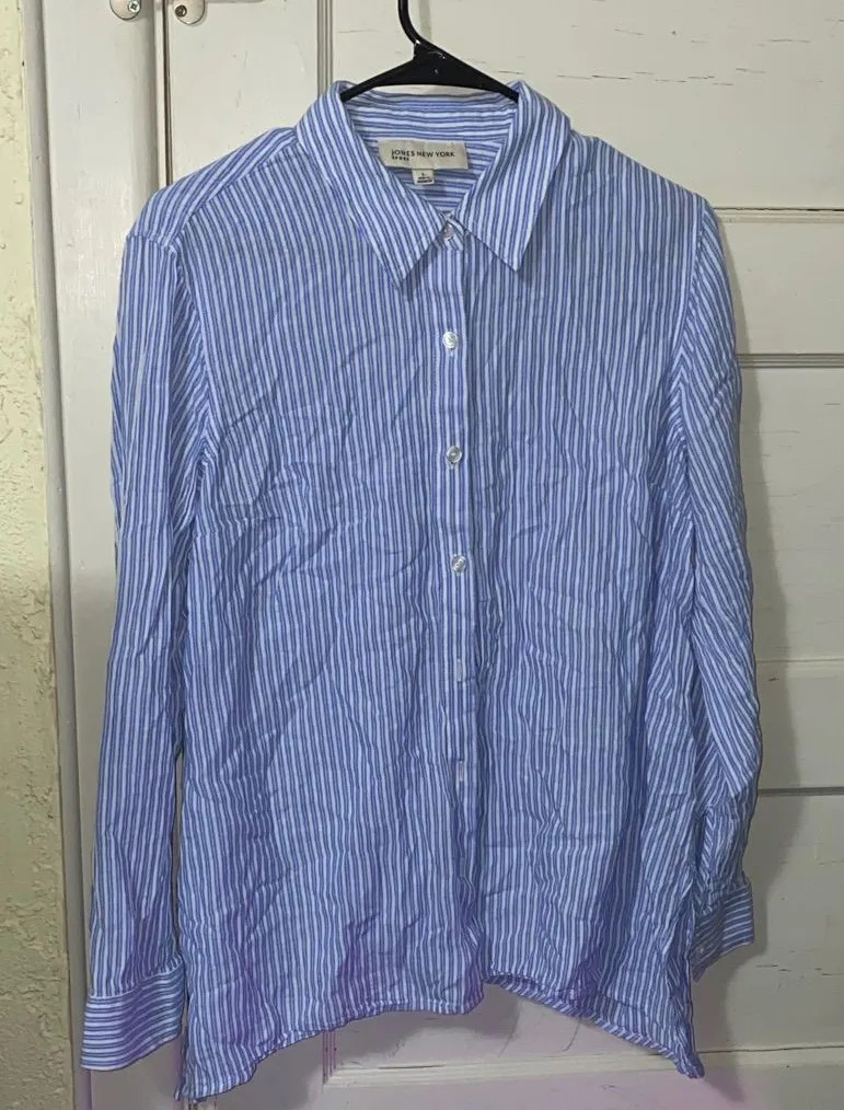 Brand new hasn’t been worn, has some wrinkles from storage. -Blue & White -Striped -Dress Shirt... Show more