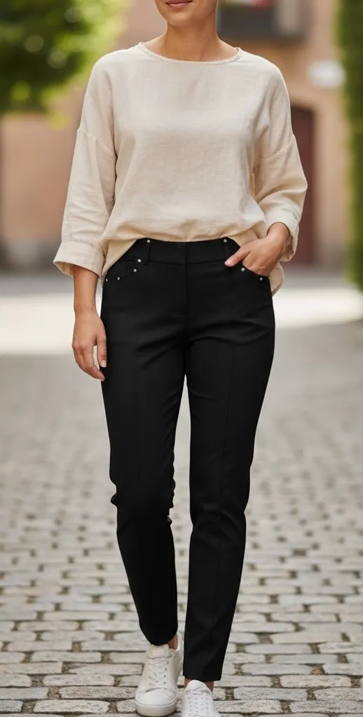 Classic black straight leg jeans. Elegant design with button details. Perfect for versatile styling.... Show more