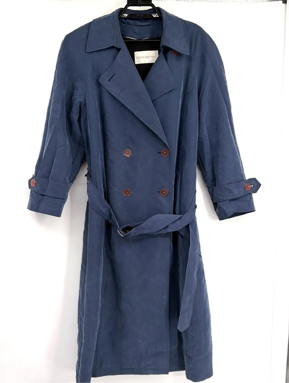 Slate Blue Jones New York Trench Coat Removable Wool Blend Liner Old Money Corpcore