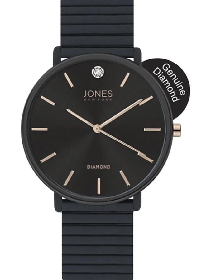 This trendy watch by Jones New York features a genuine diamond fixture on the dial. Product Featur... Show more