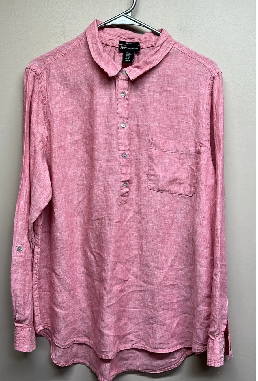 Jones New York long sleeve button up shirt in a vibrant pink hue. This classic collared shirt offer... Show more