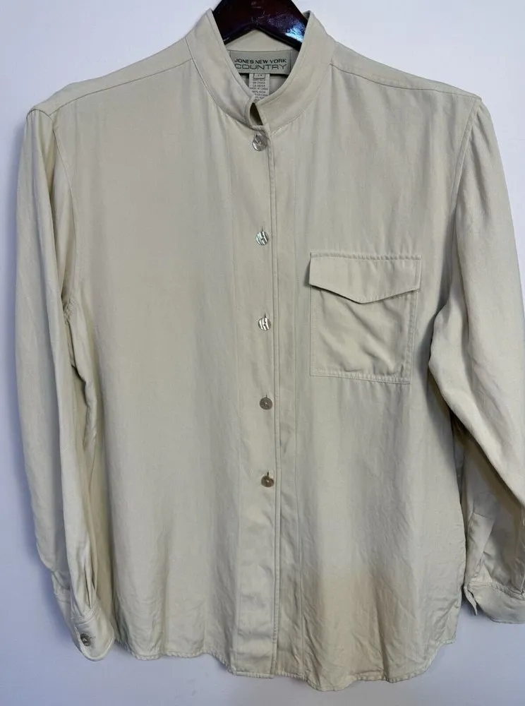 Jones New York Women's Shirt Button‎ Up Silk Stand Up Collar Beige Size14 Tan Size 14 - $24 - From Melissa