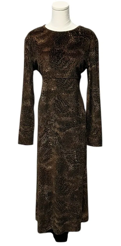 Vintage Babydoll Empire Maxi Dress Leopard Animal Print Long Sleeve Velvet Large Brand: Jones New... Show more