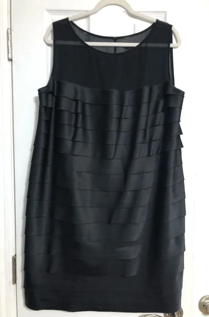 . Preowned in good condition Chic black mini dress with layered design. Sleeveless and stylish. Perfect for parties or nights out. Great for formal evening wedding Pit to pit 22” across Length 35”