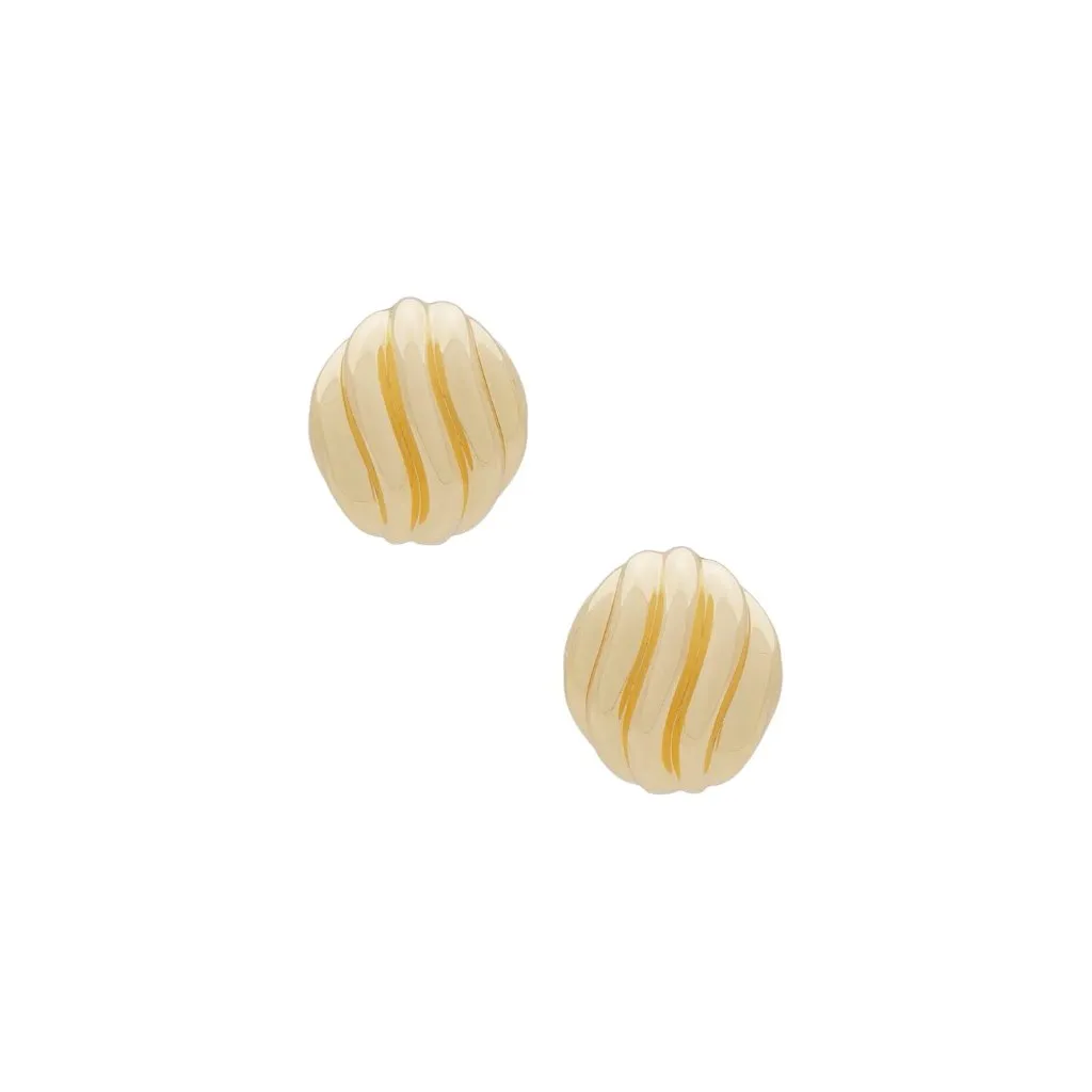 14kt ribbed gold-plated metal Made in USA Post back closure Measures approx 0.75" in diameter Revolv... Show more