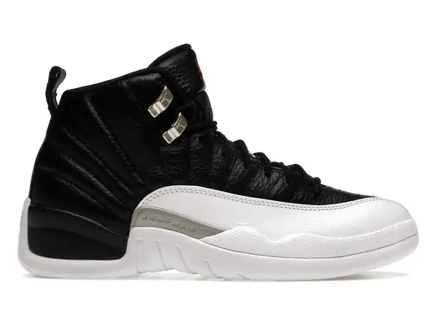 - Debuted in 1997, the Air Jordan 12 Playoff captures Michael Jordan & the Chicago Bulls' dominance in the 1990s era of NBA basketball. featuring a black tumbled leather upper with a white textural mudguard & red Jumpman embroidery on the tongue. At the heel, a woven Jordan label & "23" text add subtle branding. At the base, white sole with carbon fiber detailing completes the design.