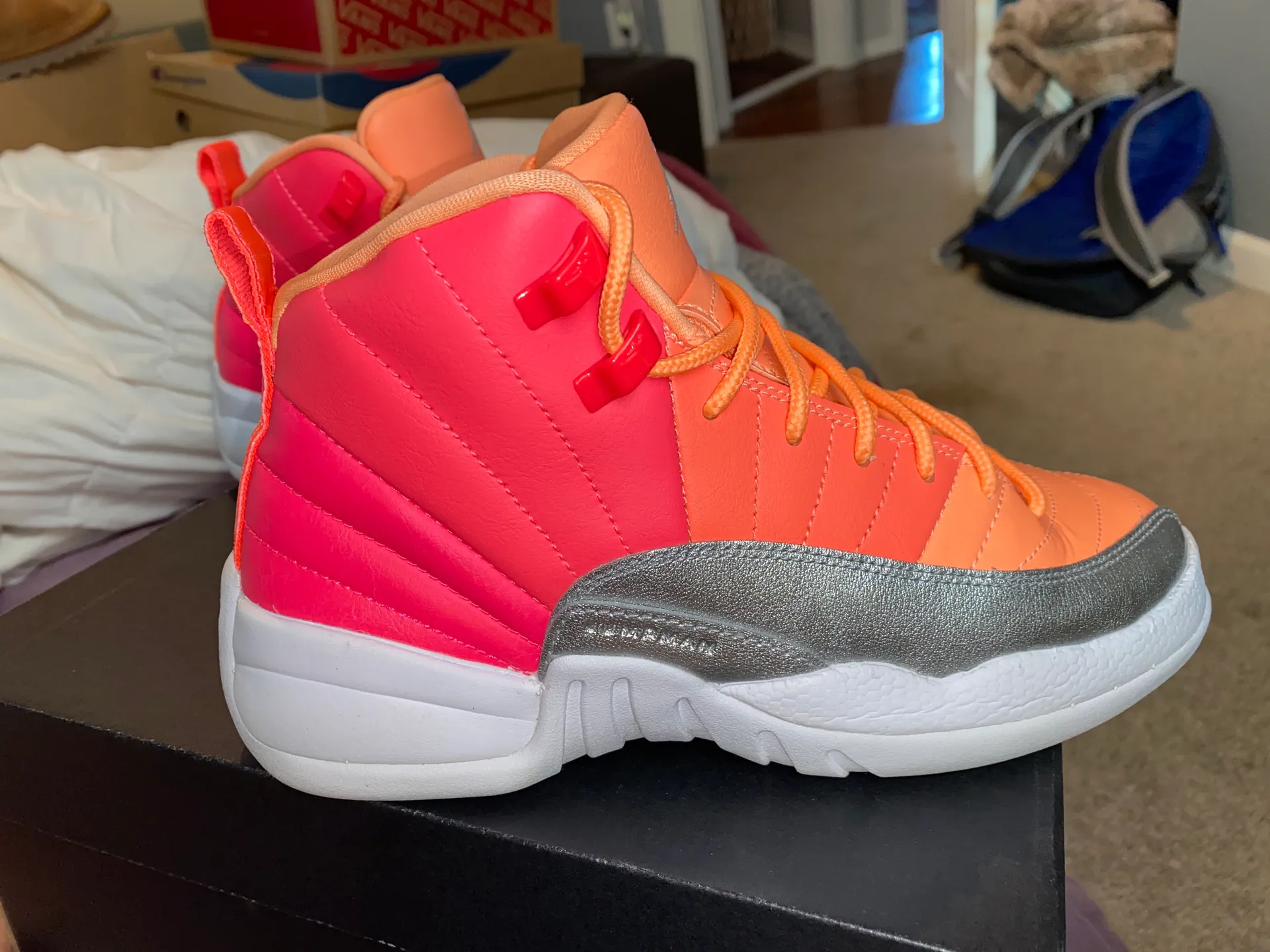 Racer Pink/ White-Hot punch Jordan 12s. Great condition, barely worn. SIZE IS 5.5 YOUTH