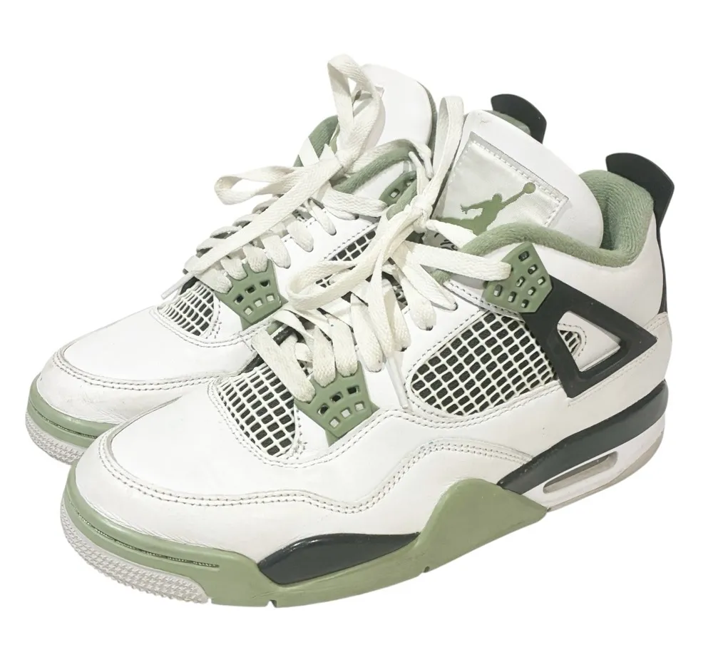 Jordan Air 4 Retro Women's Size 9 White/Oil Green-Dark Ash AQ9129-103 Low Top Size 9 Excellent Pre... Show more