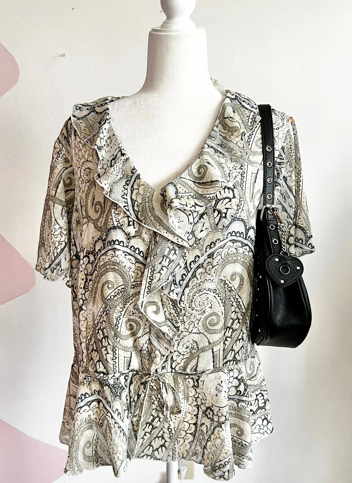 Paisley Ruffle Top, Boho, Y2K, Indie Sleaze,‎ Vintage, 70s, Festival, Hippie, XL - $11 - From Kenia