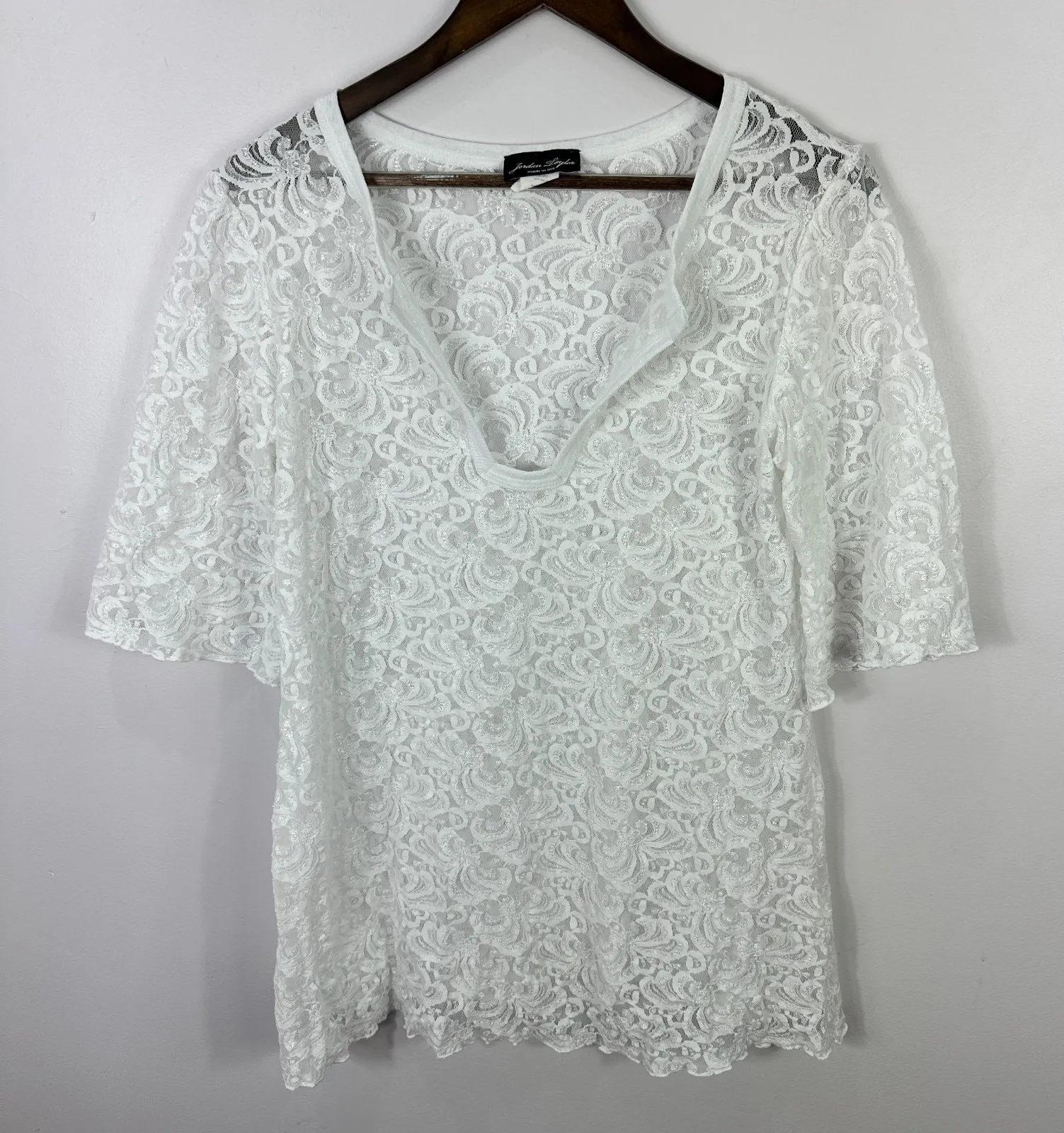 Jordan Taylor Vintage White Lace Top L Sheer Boho Festival Romantic USA Made Beautiful vintage Jord... Show more