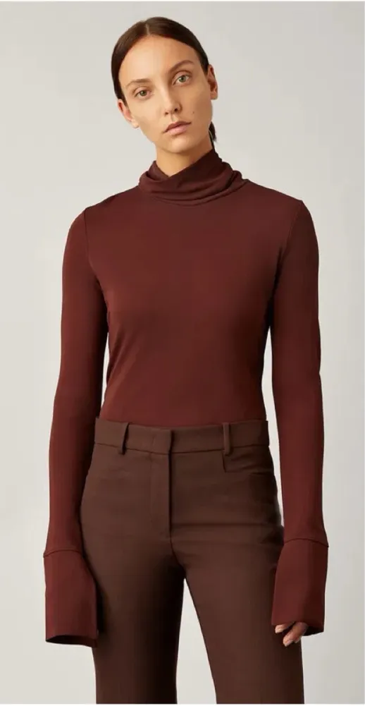 JOSEPH High Neck Crepe Jersey Turtleneck Top Excellent Condition Size X-Small (XS) Color: Burgundy R... Show more
