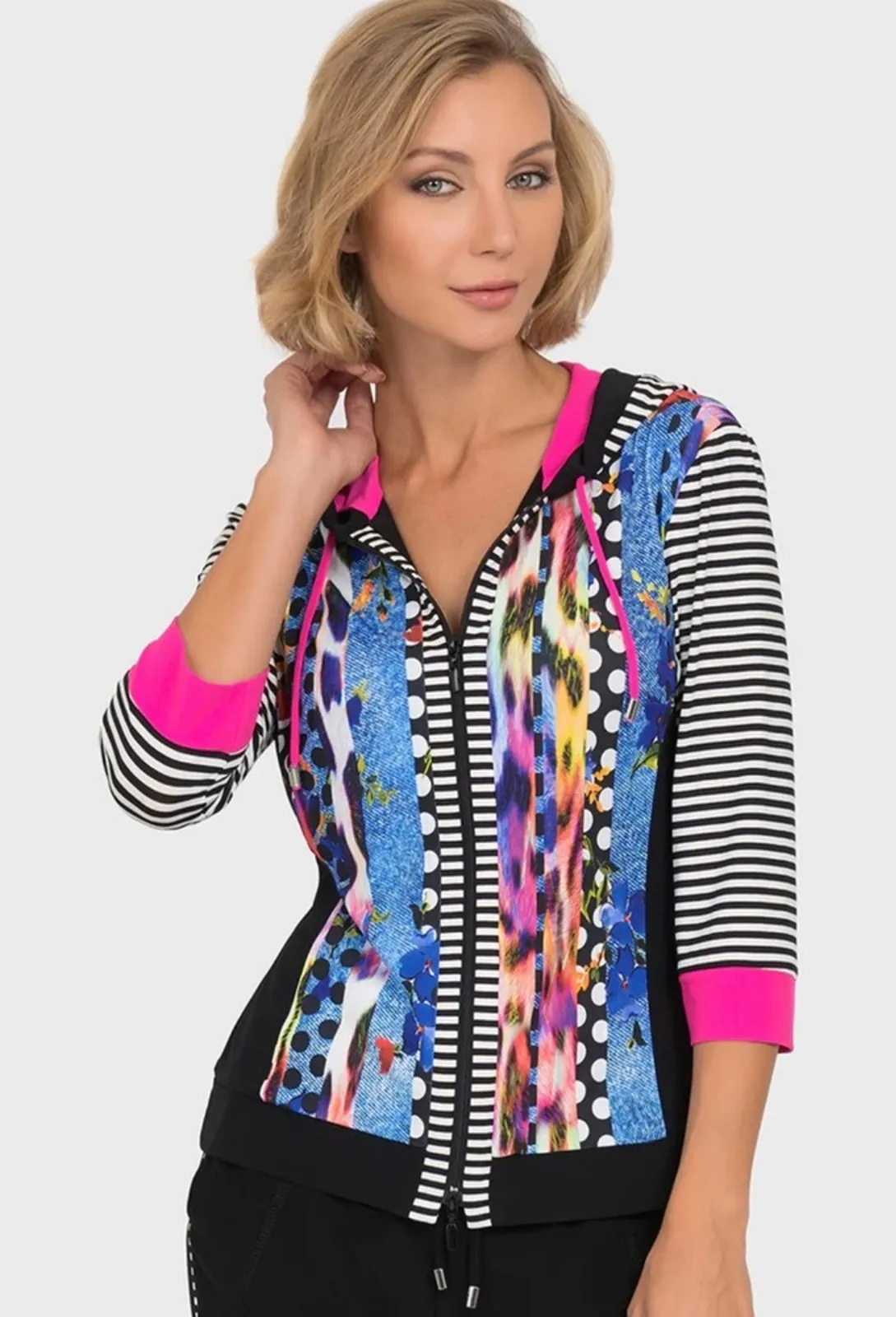 Joseph Ribkoff Hoodie Jacket Full Zip Punk 80s Stretch Pink Black Athleisure Size XS - $25 - From Audra