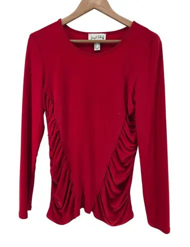 Measurements: • Length: 24 in • Bust: 16 in Type: Blouse Department: Women Style: Basic Material: Polyester Blend, Spandex Neckline: Round Neck Sleeve Length: Long Sleeve Sleeve Type: Classic/Fitted Sleeve Pattern: Solid Accents: Pleated, Ruffle Features: Wrinkle Resistant Fit: Regular Keywords: Joseph Ribkoff, red top, long sleeve shirt, ruched detail, women's fashion, elegant, chic, evening wear, business casual, designer, Canadian designer, stretch fabric, pull over No flaws, gently used, great pre-owned condition! Smoke free, cat friendly home. Wash to wear is always recommended. Fast shipping 1-2 business days! Thanks for much!