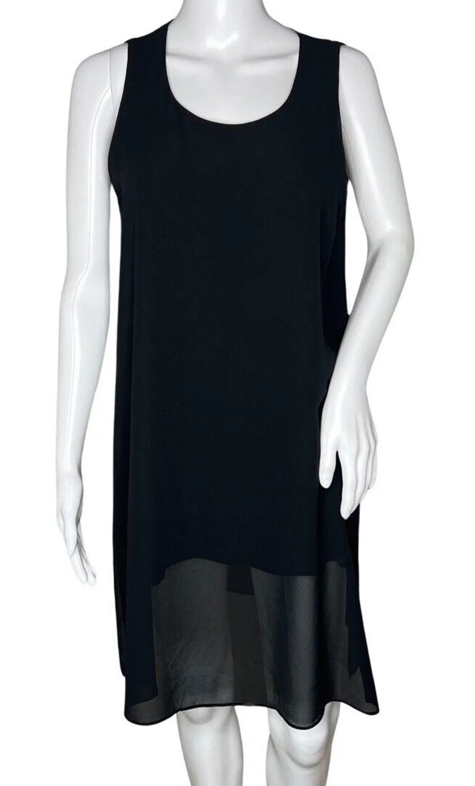 Joseph Ribkoff Shirt Women 4 Black Tunic Top Sheer Overlay Neutral Minimalist Women’s Size 4 Silky Knit and Chiffon Tunic Scoop Neck Sleeveless Lined Pullover Style Polyester Elastane Blend Stretch Party Casual Versatile Measurements are Approximate: Length 28” to 35" Armpit to Armpit 18” Gently Used Condition. No Rips Tears or Stains (V7)