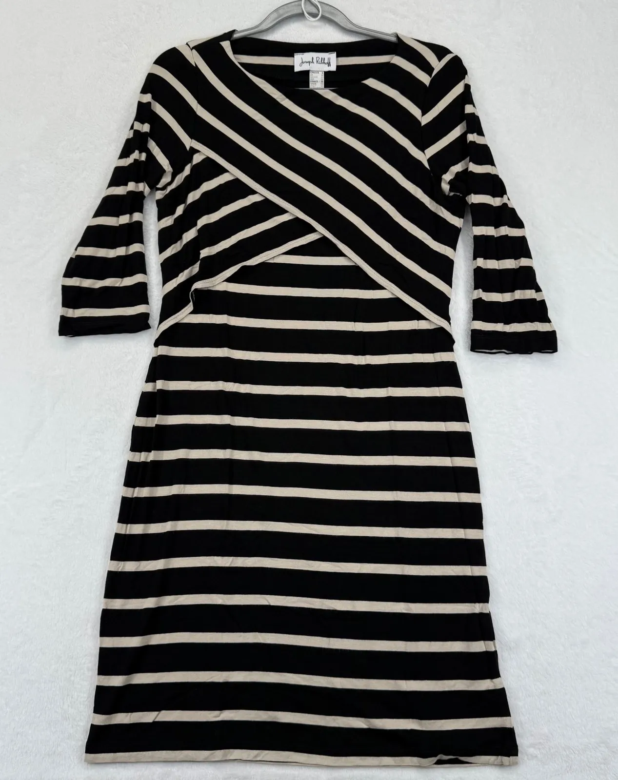 Style: Sheath, Pencil Dress, A-Line Dress Length: Knee Length Department: Women Sleeve Length: 3/4 Sleeve Pattern: Striped Occasion: Casual, Party/Cocktail Material: Cotton, Polyester, Polyester Blend Neckline: Round Neck Theme: Classic, Casual, Designer Fabric Type: Knit Season: Spring, Summer, Fall Closure: Pullover Keywords: Joseph Ribkoff, striped dress, criss cross dress, 3/4 sleeve dress, womens dress, size 8 dress, black and beige dress, casual dress, cocktail dress, knee length dress, designer dress, fashion dress, contemporary dress, comfortable dress Thank you for viewing my listing! Please see the photos for a detailed look at its CONDITION and MEASUREMENTS. All preowned items have been steam cleaned and/or washed. Feel free to reach out with any questions.