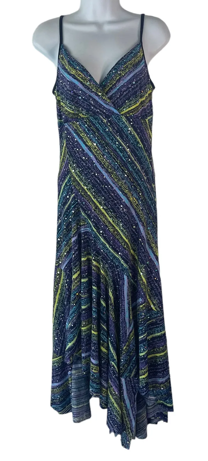Joseph Ribkoff Women's Size 6 Small Fairy Sequin Green Blue Maxi Dress Pit To Pit 15" Length 50" Ite... Show more
