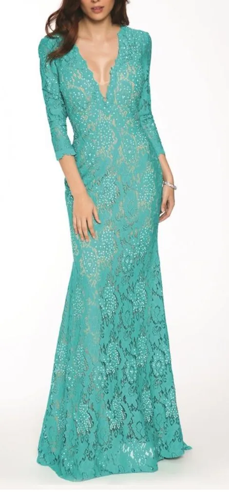 Jovani 20025 Long Formal Turquoise Rhinestone Long Sleeve Lace Dress Size 2 Color turquoise lace w... Show more