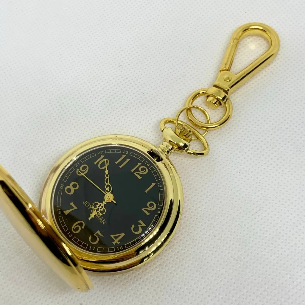 JOY & IMAN Pocket Watch Quartz Clip On Purse Fob Gold Tone black 46mm running - $15 - From Watch
