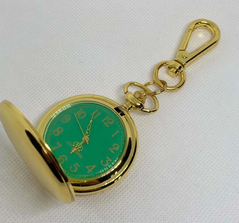 JOY & IMAN Pocket Watch Quartz Clip On Purse Fob Gold Tone green 46mm running - $15 - From Watch