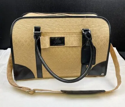 Carry on small but perfect. this bag has six slots where you can put shoes of beauty products and the center is perfect for clothes. weekend trip? well this is a perfect stylish bag This item has been cleaned, sanitized and deodorized Features: • Luggage carry on Size: Unisex small Condition: Pre-Owned Good