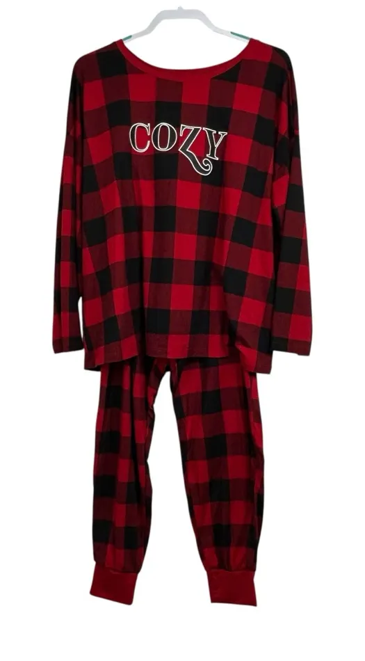 Get into the holiday spirit with this ultra-soft Joyspun pajama set featuring a classic red & black buffalo plaid print and a cute “COZY” graphic on the front. Perfect for lounging, gifting, matching family PJs, or cozy winter nights. ✨ Details • Brand: Joyspun • Size: XL (16–18) • Top: Long sleeve, relaxed fit • Pant: Jogger-style cuffs, stretchy waistband • Color: Red & Black Buffalo Check • Graphic: “COZY” • Material: 95% Recycled Polyester, 5% Spandex • Condition: Excellent pre-owned condition — super soft & stretchy ❄️ Why You’ll Love It • Perfect for Christmas morning photos • Lightweight but warm + comfy • Festive plaid you can wear all season • Soft brushed feel with great stretch 🎁 Ships fast! • Joyspun pajamas • Joyspun cozy sleepwear • Joyspun buffalo plaid • Women’s buffalo plaid pajamas • Red black check pajama set • Cozy Christmas pajamas • Holiday loungewear set • Women’s flannel-look pajamas • Soft recycled polyester pajamas • Joyspun XL pajamas • Plus size pajamas XL • Women’s matching pajama set • Long sleeve pajama top and pants • Winter lounge set for women • Comfortable women’s sleepwear #joyspun #plaidpajamas #buffalocheck #christmaspjs #holidaypajamas #cozypjs #matchingpjs #loungewearset #winterpajamas #womenssleepwear #softpajamas #xlpajamas