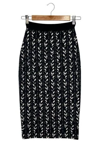 Black Halo Skirt Women's Midi Pencil Shirt Geometric Slimming Designer Black Size X-Small - 95% Polyester/5% Spandex Geometric print. Pull on styling. Midi length. Classic, Designer, Preppy Waist - 10.5 inches Length - 29 inches* *Actual measurements my differ from the manufacturer's tag. Great pre-owned condition - see pics and ask questions for more details. 5858823