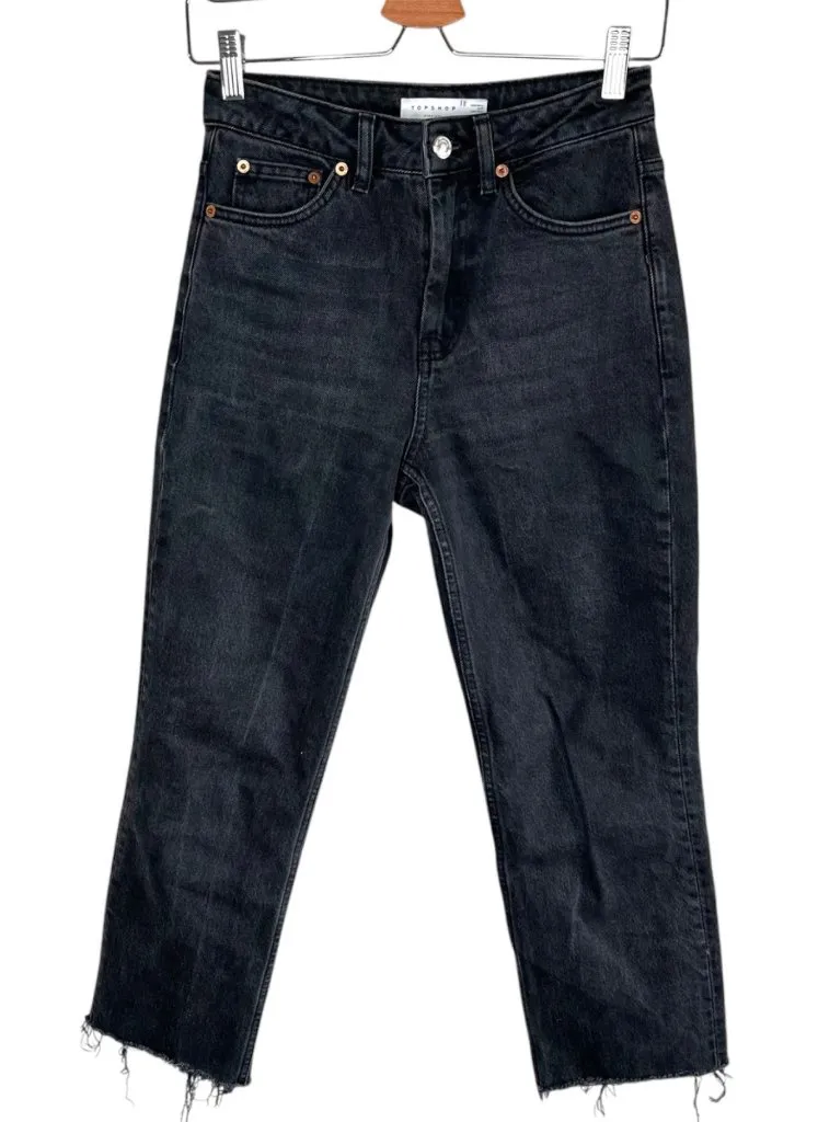 Great preloved condition Topshop Womens Straight Leg High Waisted Black Denim Jeans Size 26 Frayed H... Show more
