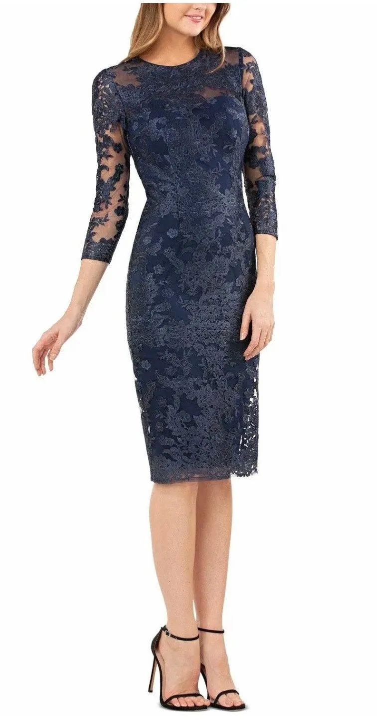 Women Blue Scoop Neck 3/4 Sleeve Detail Sheath Dress Size 12 - $76 (73% Off Retail) - From Abby