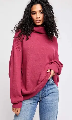 Free People Softly Structured Knit Tunic Turtleneck Sweater Oversized Slouchy Purple "Berry Crush"... Show more