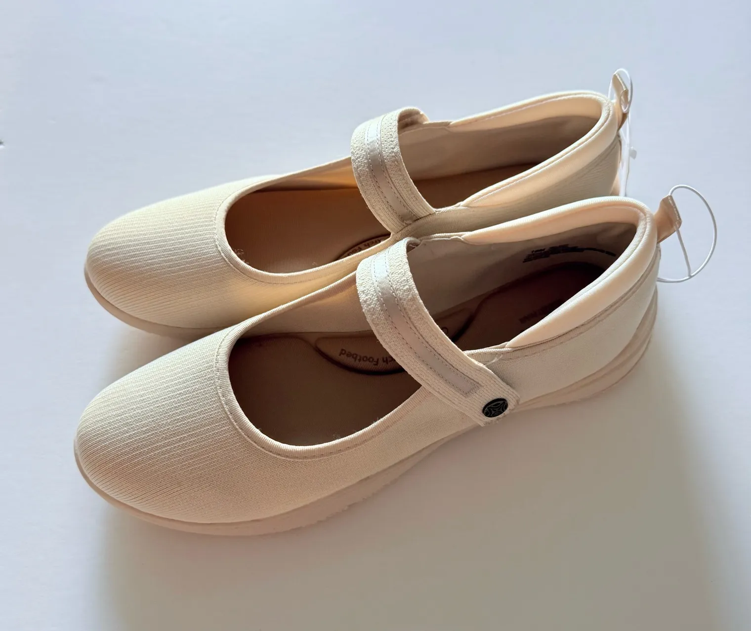 Step into all-day comfort and effortless style with these JSPORT Women’s Mary Jane Flats in a beautiful neutral cream beige tone. These versatile shoes combine timeless Mary Jane charm with modern streetwear comfort — perfect for casual outings, travel, or everyday wear. Crafted with soft, breathable materials, these flats feature a textured knit upper, adjustable strap with button detail, and a lightweight flexible sole that provides excellent grip and traction. The memory foam footbed with built-in arch support ensures long-lasting comfort, making them ideal for extended walking or standing. Their sleek silhouette and neutral color make them easy to pair with jeans, skirts, or dresses — a must-have addition to any stylish wardrobe. Features: • Brand: JSPORT • Style: Women’s Mary Jane Flats • Color: Cream Beige / Off-White • Size: US 10 • Lightweight and flexible construction • Adjustable hook-and-loop strap for a secure fit • Soft cushioned insole with arch support • Durable anti-slip rubber sole • Round toe design for comfort and movement • Comes with original box Condition: Brand new, never worn, in original packaging. Perfect For: Casual wear, travel, commuting, or pairing with jeans and relaxed street-style outfits.