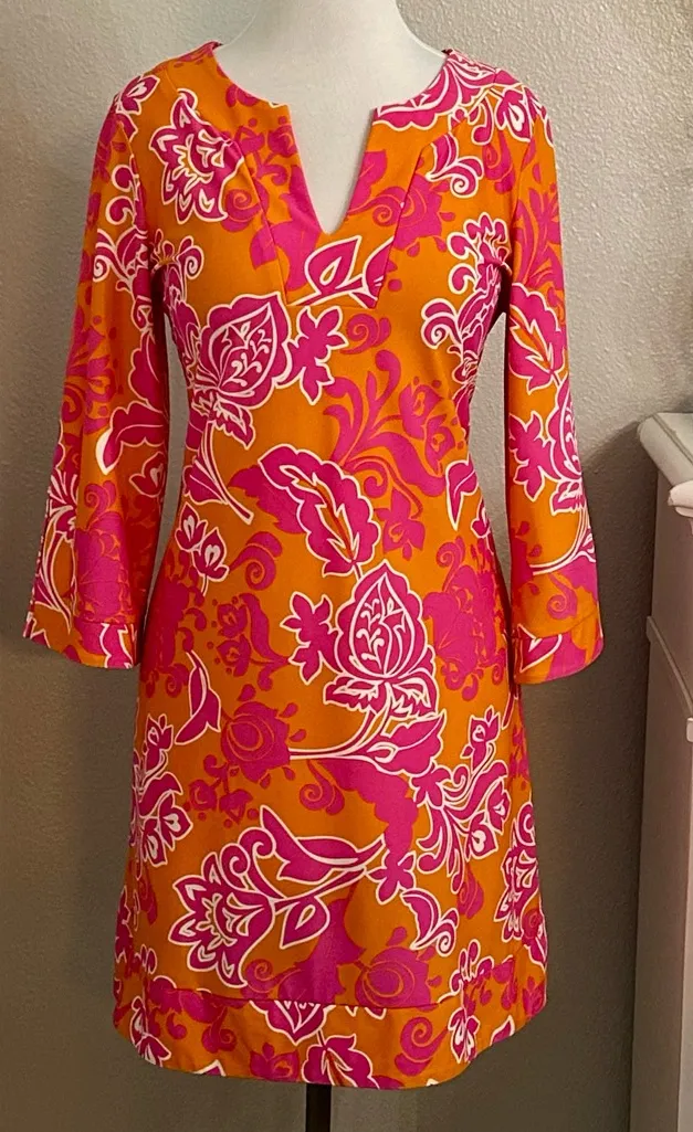 Jude Connally Megan Tunic Dress Etched Floral Coral Pink Size Large - $50 - From Anita