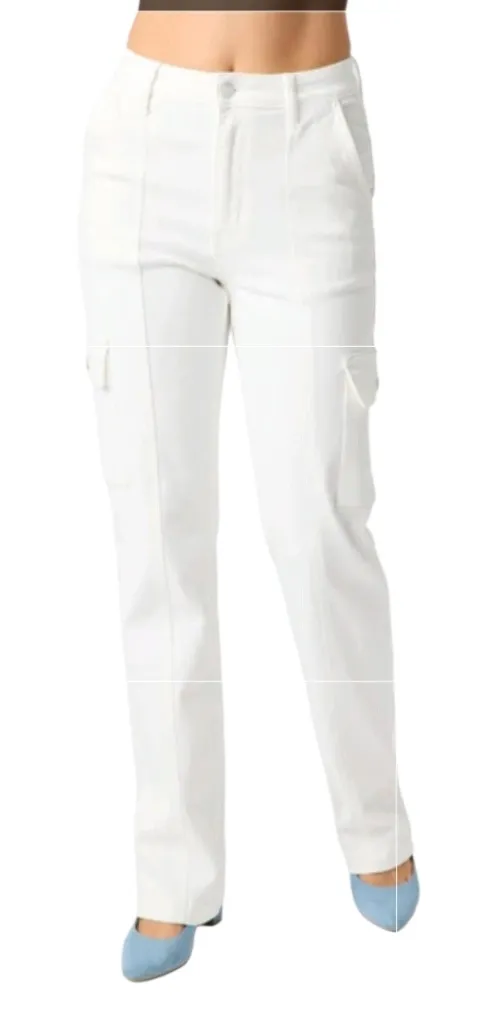 Judy Blue Cargo Straight White Jeans Womens Size 16W High Waist Preppy NEW Plus - $49 New With Tags - From Carla