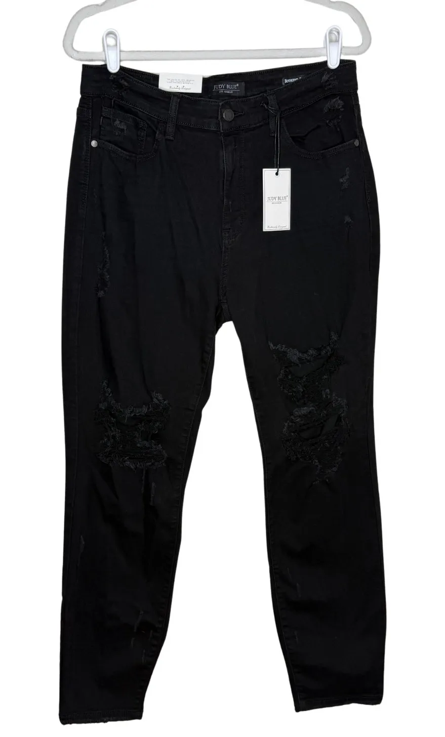 Judy Blue Distressed Boyfriend Jeans. New with tags, never worn. These black Judy Blue jeans featur... Show more