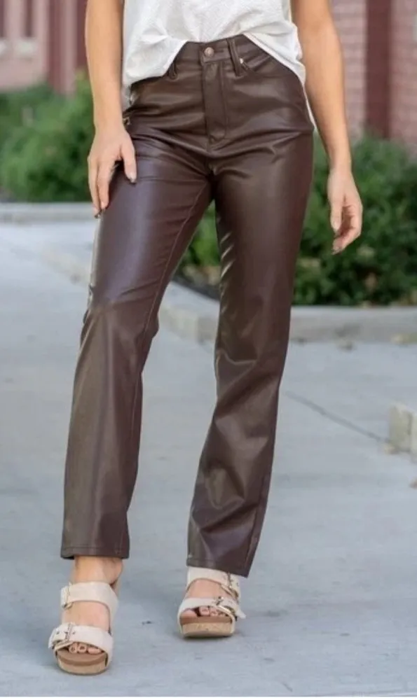 Judy Blue faux leather high rise straight jeans pants 9 29 brown - $38 - From Anna